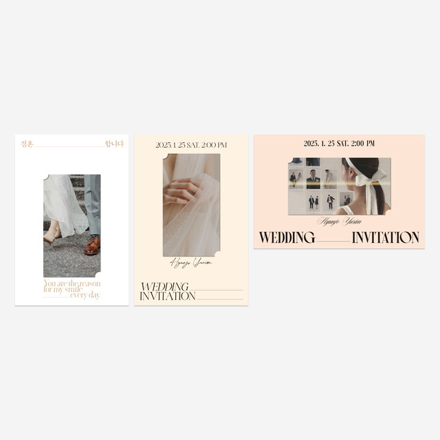 세련된 3가지 스타일 중 원하는 디자인을 선택해 감각적인 연출을 완성하세요. 작은 디테일까지 특별하게, 더욱 멋진 웨딩을 준비하세요!