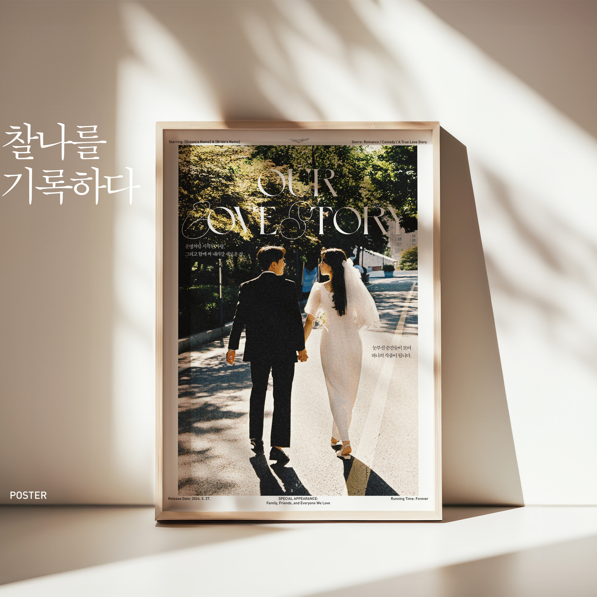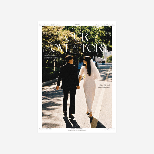 빈티지한 감성을 담아, 영화 포스터 스타일로 웨딩 포스터를 제작해 보세요! 클래식한 디자인과 맞춤 문구로 특별한 순간을 더욱 의미 있게 간직하세요.